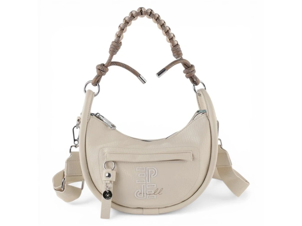 Dámská kabelka Pepe Moll s kapsou z přední strany a ozdobnou rukojetí. Součástí kabelky je dlouhý popruh.
