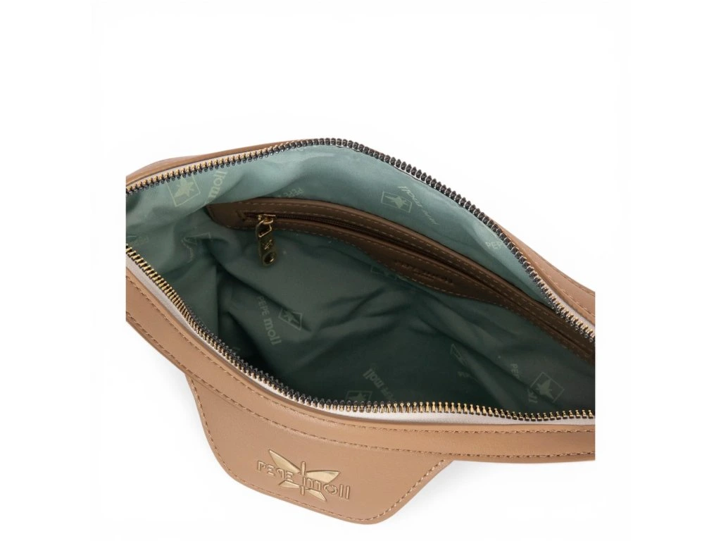 Vnitřek: Vnitřek kabelky je vyrobený z textilního materiálu s ukládacím prostorem na telefon a dalšími přihrádkami.