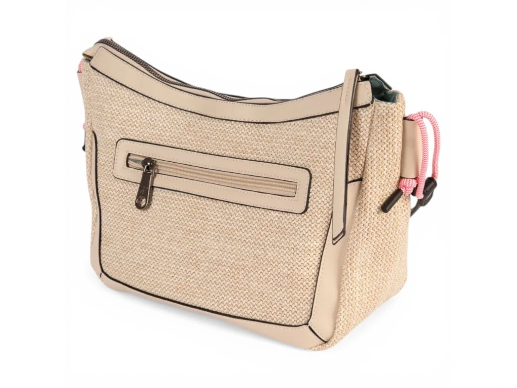 Vnitřek: Vnitřek kabelky je vyrobený z textilního materiálu s ukládacím prostorem na telefon a dalšími přihrádkami.
