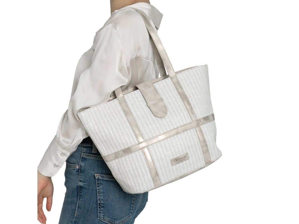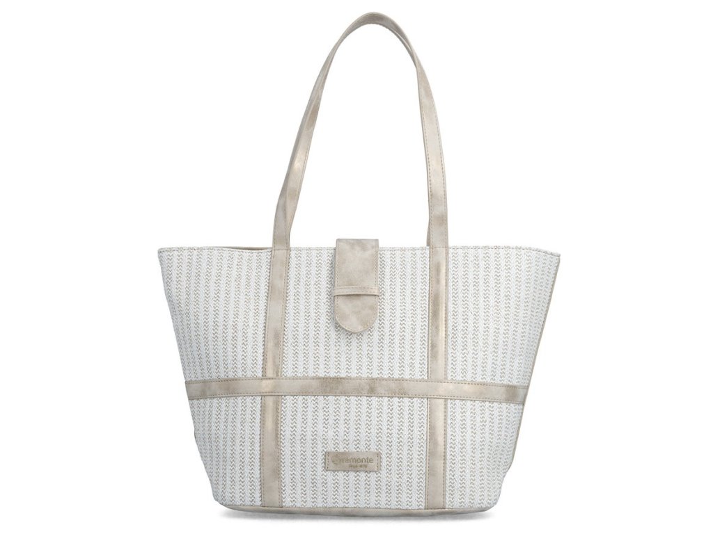 Dámská kabelka Remonte Q0764-80 Falama/Alula v bílo-zlaté kombinaci zaujme elegantní strukturou a lehce letním vzhledem. Prostorný tvar se zapínáním na zip je ideální pro každodenní nošení i dovolenou.