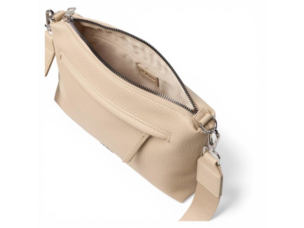 Vnitřek: Vnitřek kabelky je vyrobený z textilního materiálu s ukládacím prostorem na telefon a dalšími přihrádkami.