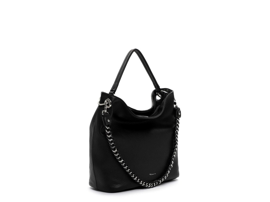 Dámská kabelka Tamaris z kvalitní syntetiky v designu „hobo“ s dlouhým popruhem přes rameno a designovým řetězem v přední části.