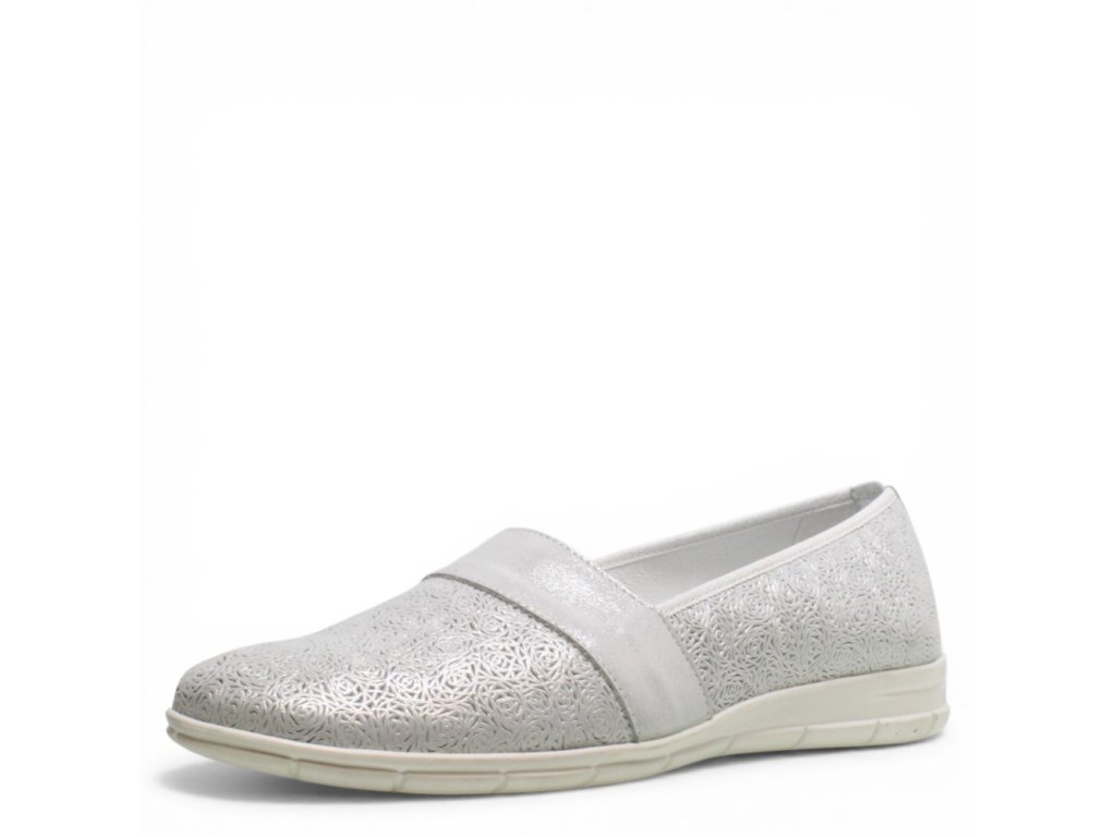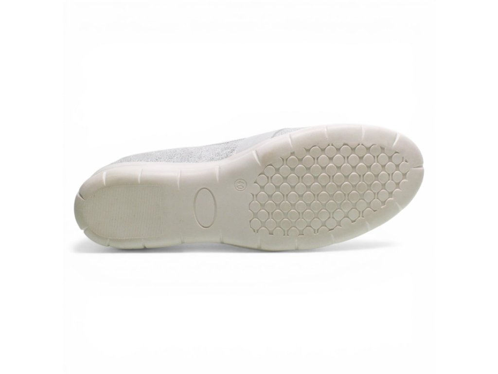 Svršek: Svršek obuvi je vyrobený z koženého materiálu. Barva svršku je stříbrná.