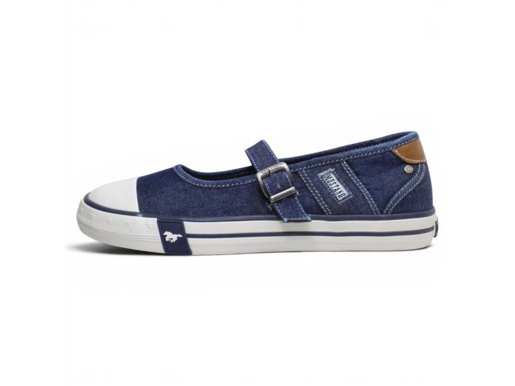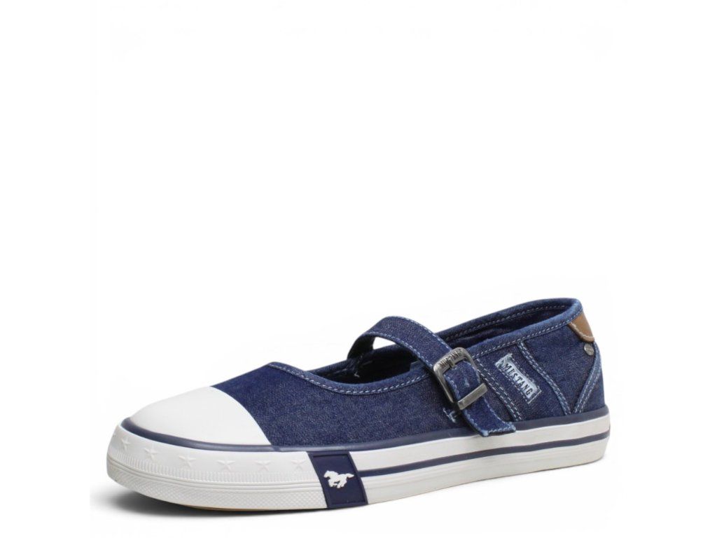 Dámské plátěné baleríny Mustang na pohodlné podešvi. Díky pásku přes nárt jsou snadno přizpůsobitelné. Jsou ideální ke každodennímu nošení.