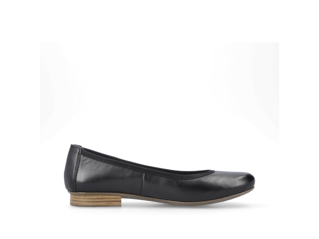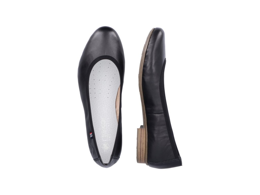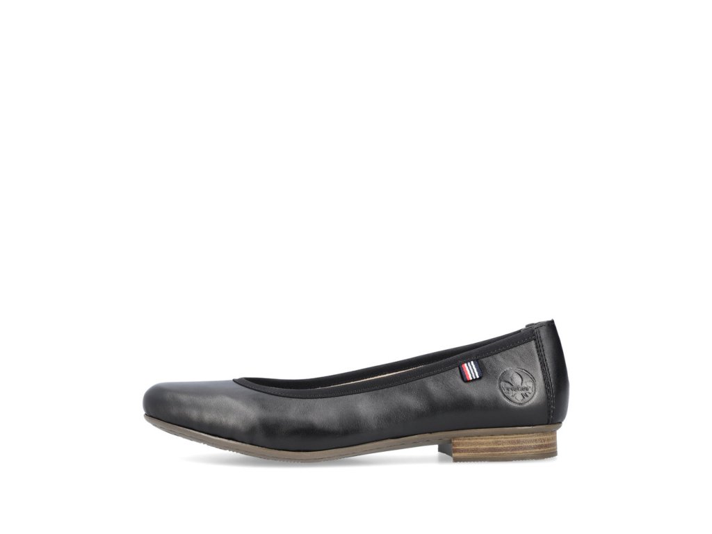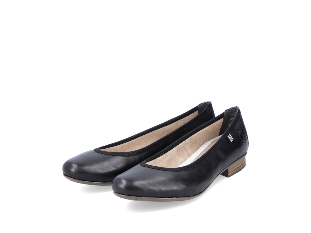 Dámské baleríny Rieker 51994-01 z hladké kůže jsou elegantní a pohodlnou volbou pro každý den. Flexibilní konstrukce, měkká stélka a lehká podešev zajišťují komfort i při delším nošení. Ideální obuv do práce i na běžné denní nošení.