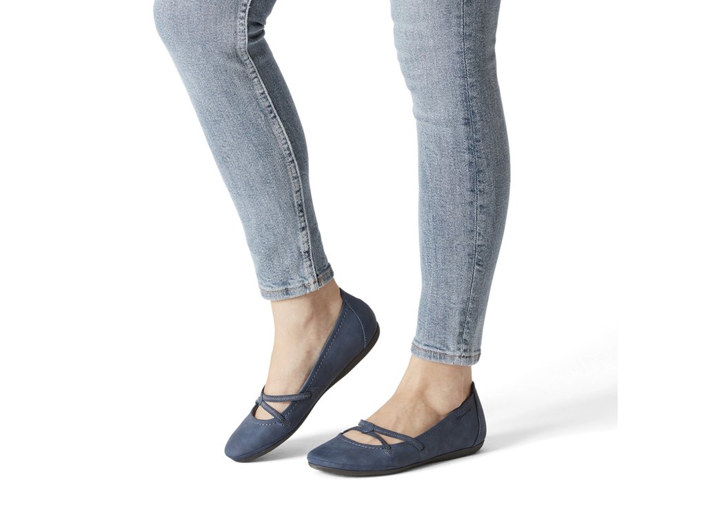 Dámské baleríny Tamaris jsou pro každodenní nošení. Kombinace hladkého vzoru s pásky přes nárt na špičce tvoří nadčasový vzhled.