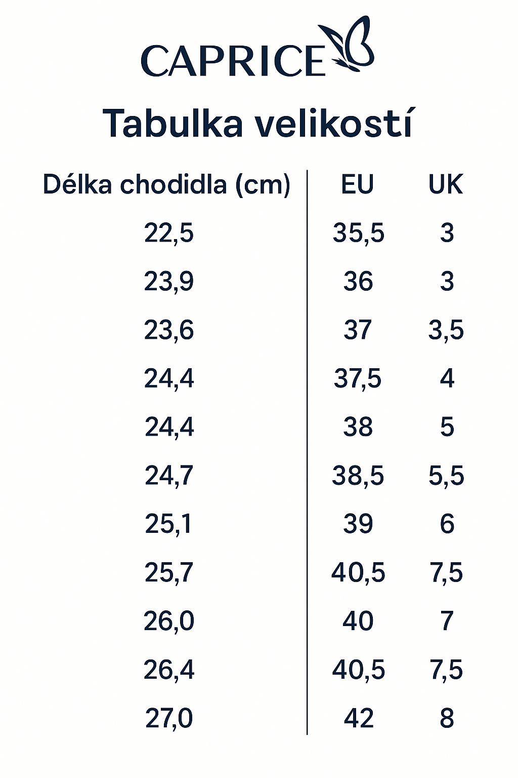 Podešev: Podešev obuvi je s protiskluzovým vzorkem vyrobená ze syntetického materiálu. Podpatek vysoký 3 cm.