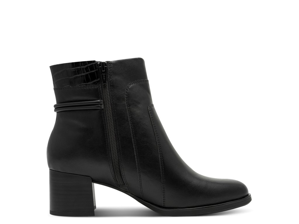 Dámské kotníkové boty Jana na stabilním podpatku. Jednoduchý střih s ozdobou po straně, která dává botám elegantní vzhled. Díky zipu se snadno obouvají.