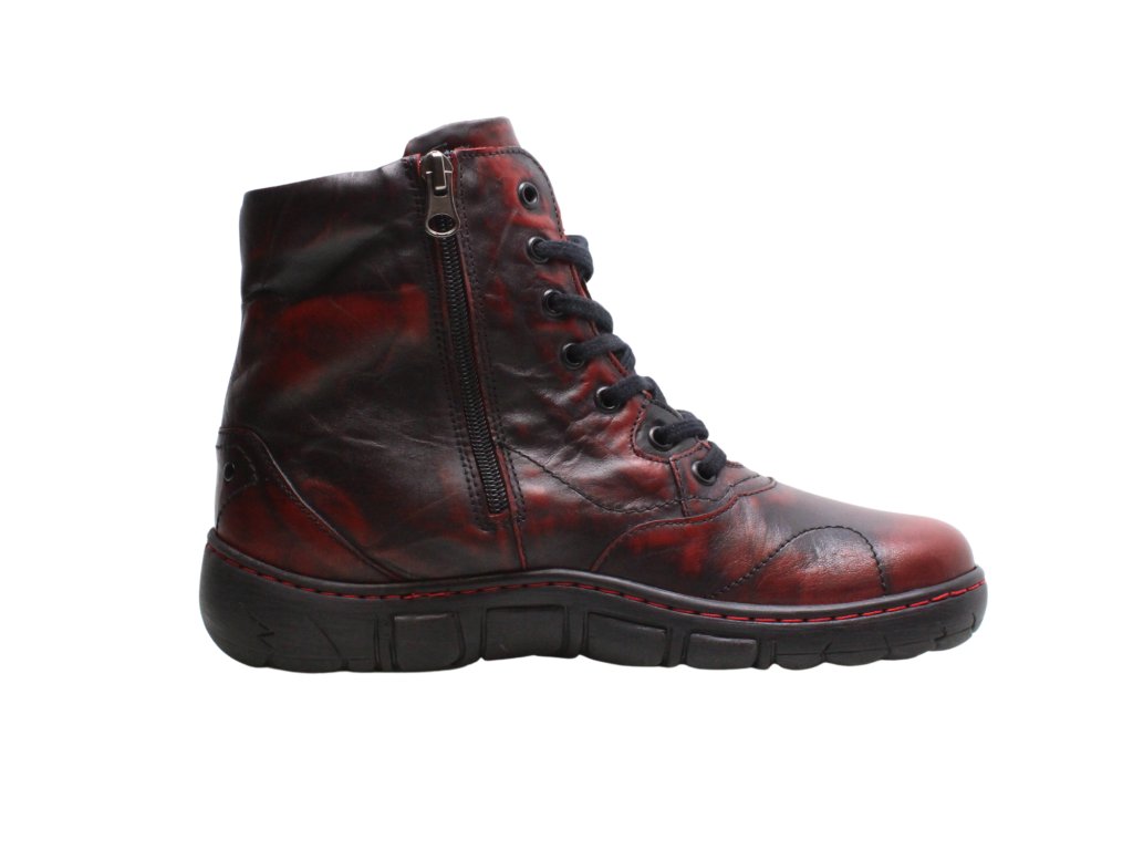 Podošev: Podošev obuvi je s jemným protišmykovým vzorom vyrobená zo syntetického materiálu. Platforma je vysoká cca 2 cm. Zvršok: Zvršok obuvi je vyrobený z koženého materiálu. Farba zvršku je bordó. Podšívka: Podšívka je vyrobená z textilného zatepleného materiálu. Stielka: Stielka je textilná s penovým zmäkčením na zmäkčenie došľapu. Šírka: H – širšia vďaka okrúhlej špičke Podšívka: textil so zateplením Stielka: textil Podošev: syntetika Šírka: H