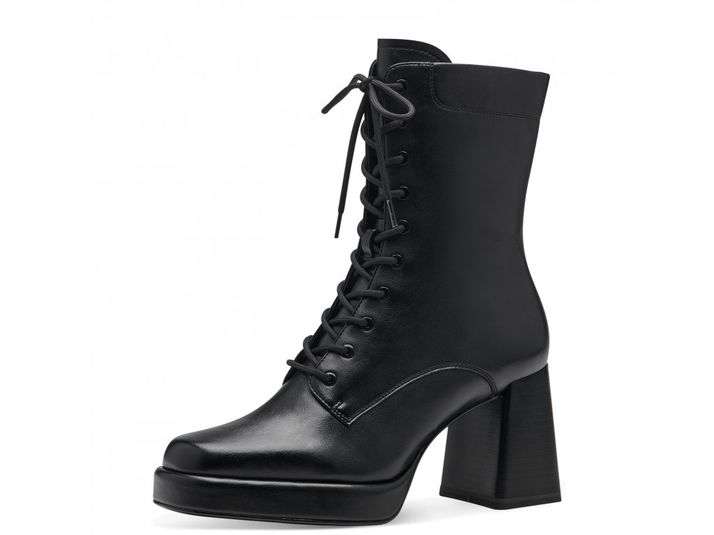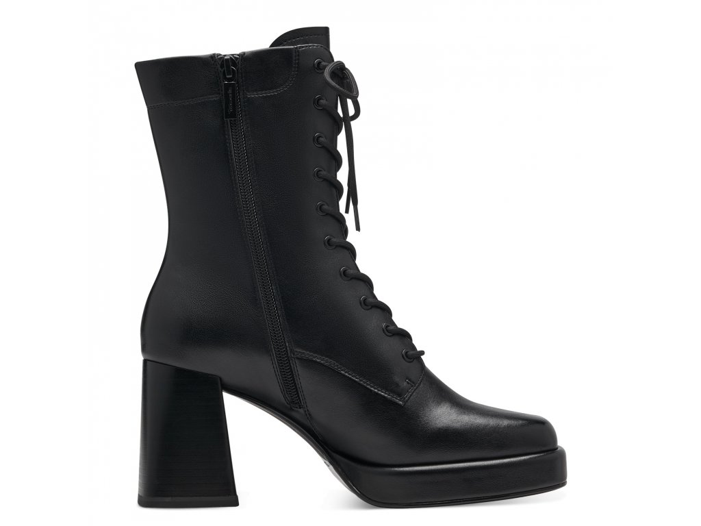 Elegantní dámské kotníkové boty Tamaris se šněrováním na bytelném a pohodlném podpatku. Díky zipu po straně jsou snadno přezutelné.