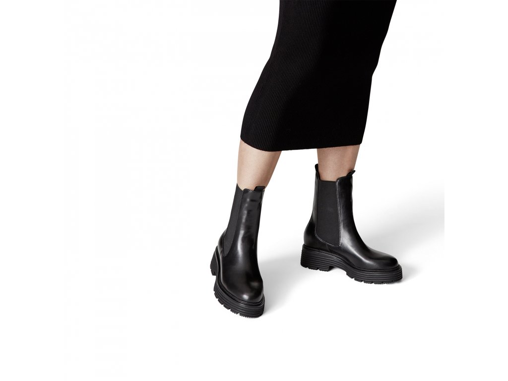 Dámské zateplené kotníkové boty Tamaris na pohodlné platformě. Kombinace hladkého kulatého vzoru s gumou po straně vypadá nápaditě. Díky bytelné podrážce jsou ideální ke každodennímu nošení.