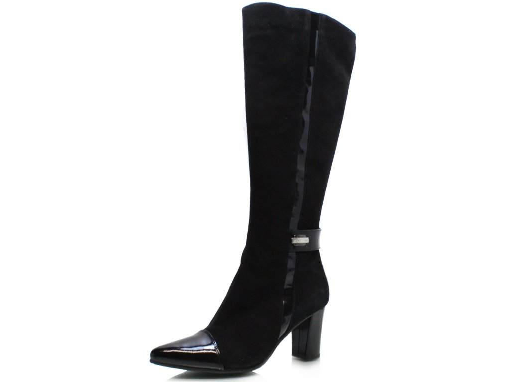 Dámské kozačky Iberius na elegantním vysokém podpatku. Lakový vzor v kombinaci s broušeným vzorem zaujme na první pohled.