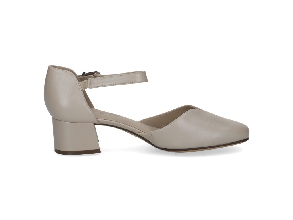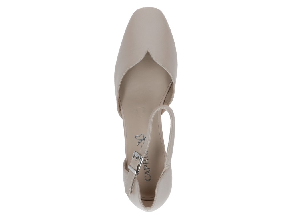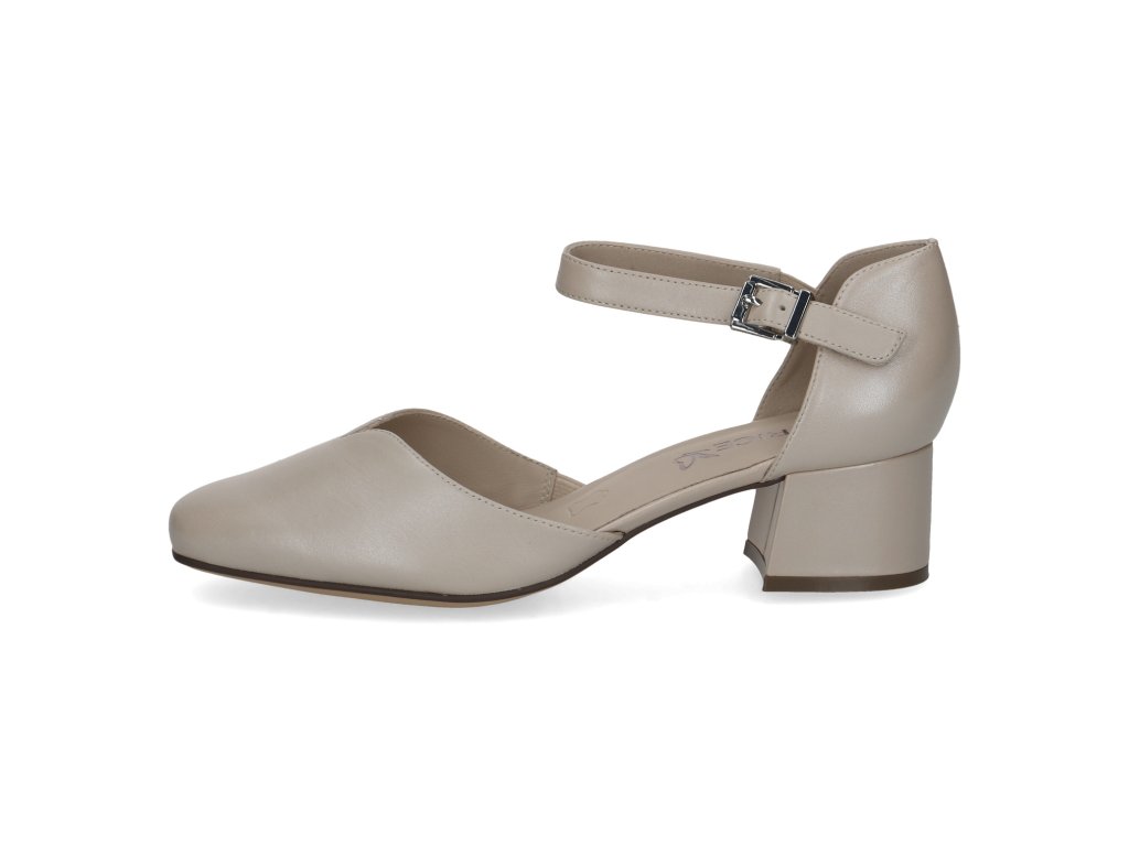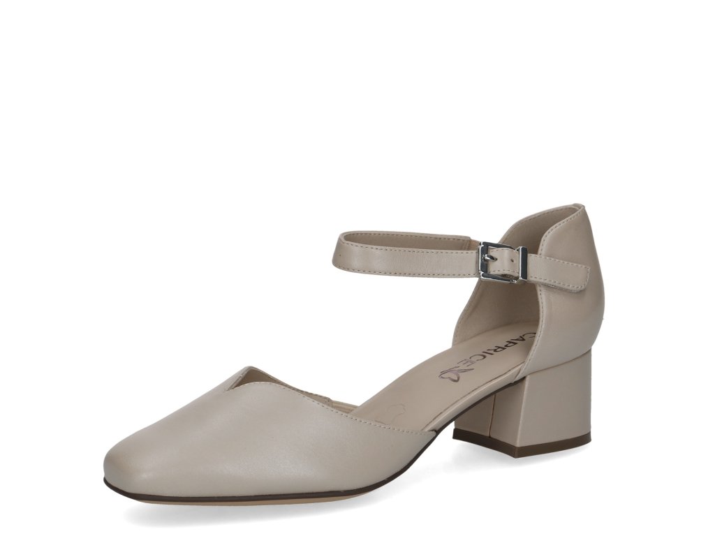 Dámské lodičky Caprice se zapínáním přes kotník a širokým podpatkem pro pohodlnou chůzi.