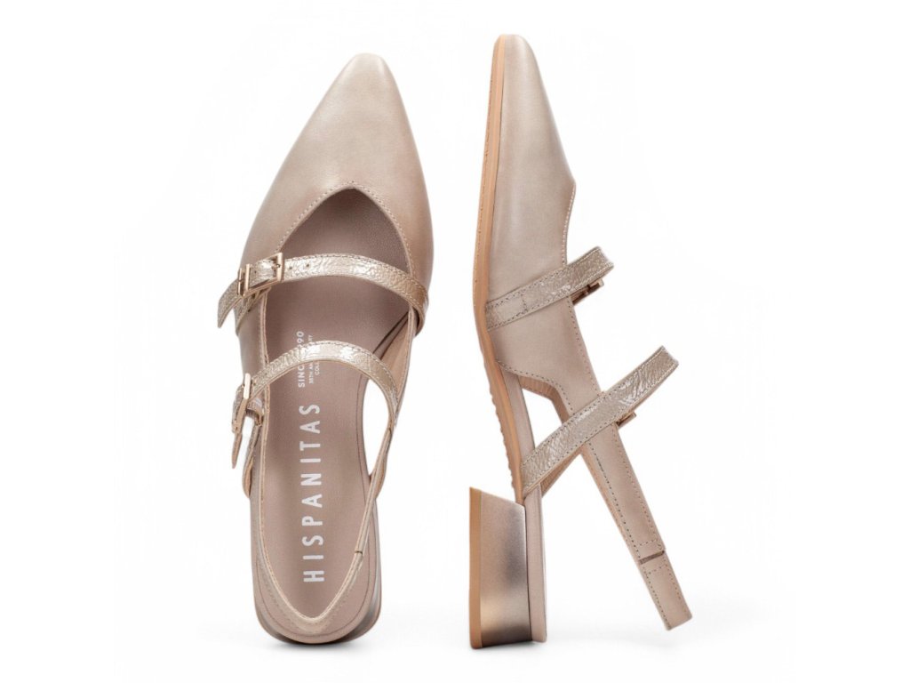 Dámské lodičky Hispanitas s pásky přes nárt. Díky pohodlnému podpatku jsou pohodlné na noze. Kožený materiál se snadno přizpůsobí Vašemu chodidlu.