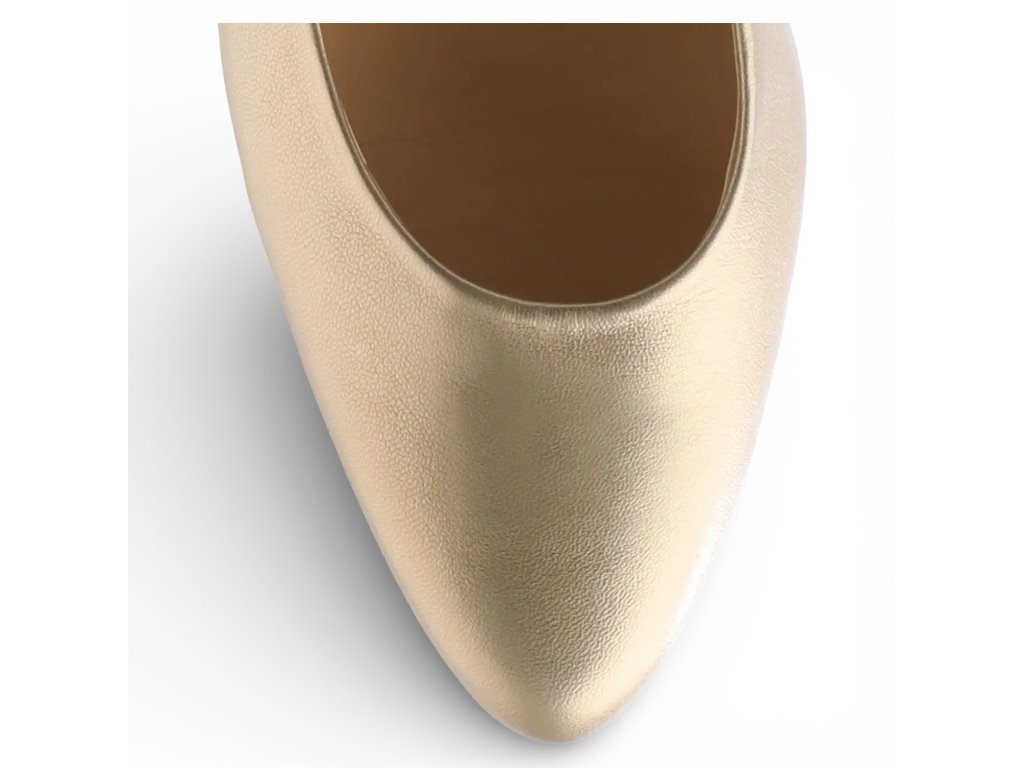 Svršek: Svršek obuvi je kožený. Barva svršku je zlatá.