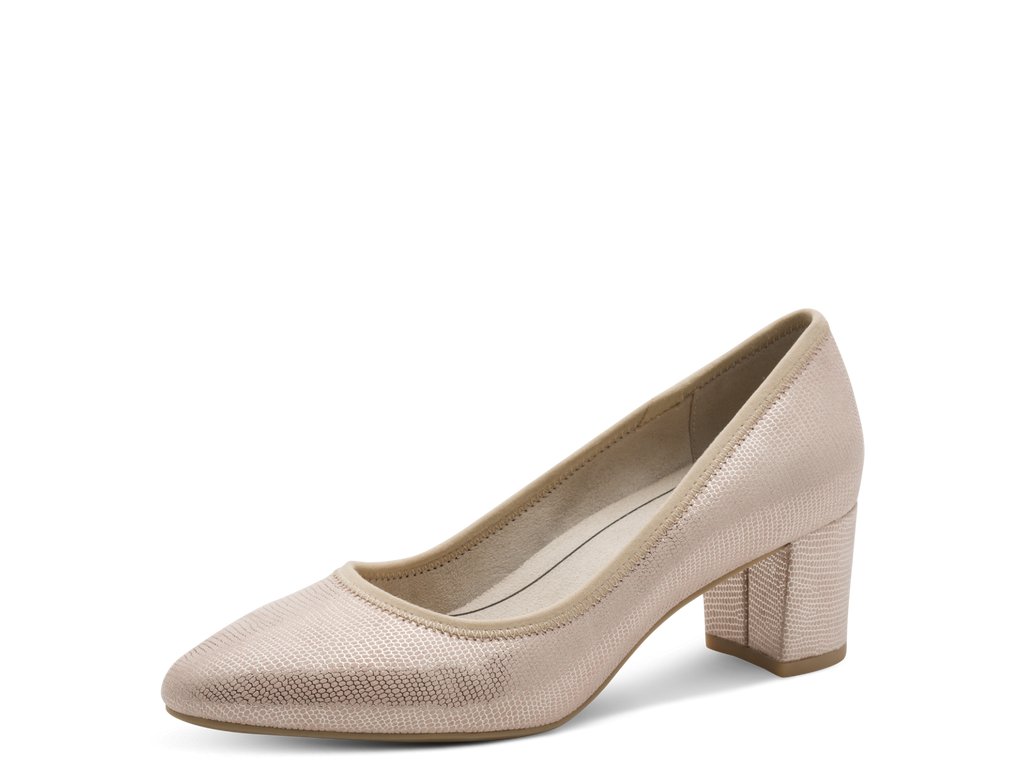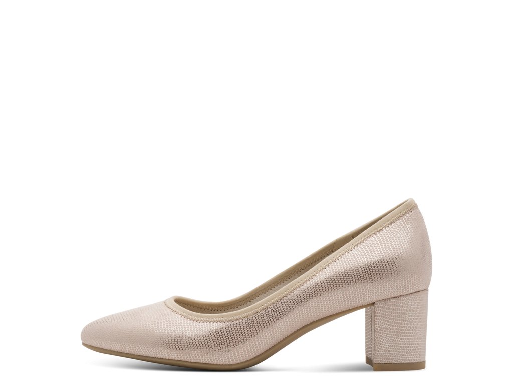 Dámské lodičky Jana na pohodlném podpatku, s měkkou stélkou pro komfortní chůzi. Ozdobný vzor zaujme na první pohled.