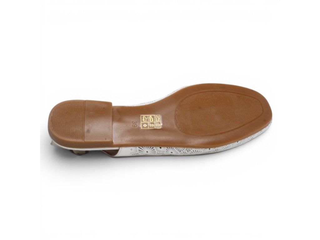 Svršek: Svršek obuvi je vyrobený z koženého materiálu. Barva svršku je bílá.
