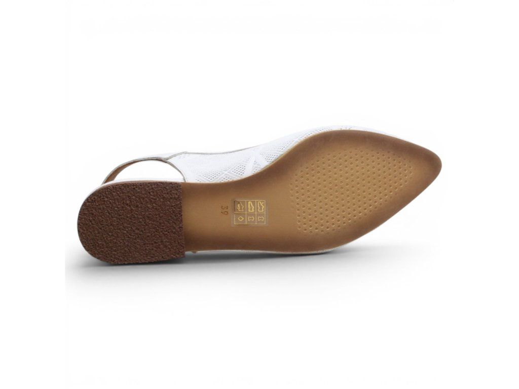 Svršek: Svršek obuvi je vyrobený z koženého materiálu. Barva svršku je bílá.