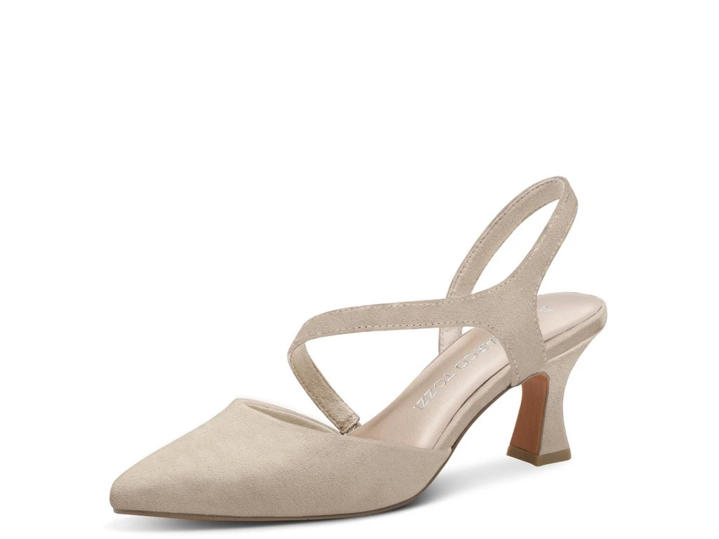 Dámské lodičky Marco Tozzi na vyšším podpatku, s volnou patou a úzkou špičkou. Jsou vhodné do městské zástavby i do společnosti.