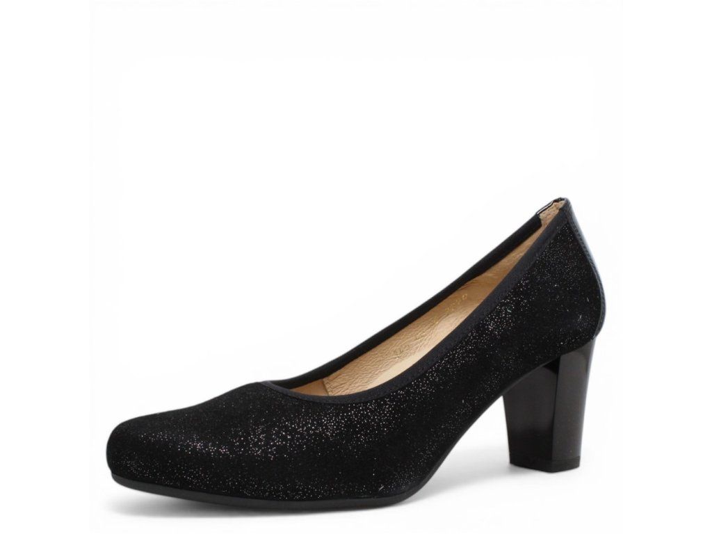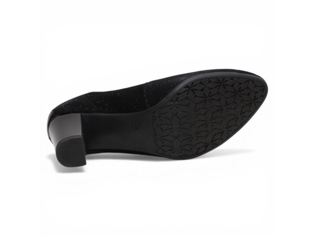 Dámské kožené lodičky Misstic s ozdobným vzorem na pohodlném podpatku. Díky gumičce po obvodu svršku perfektně sedí na noze.