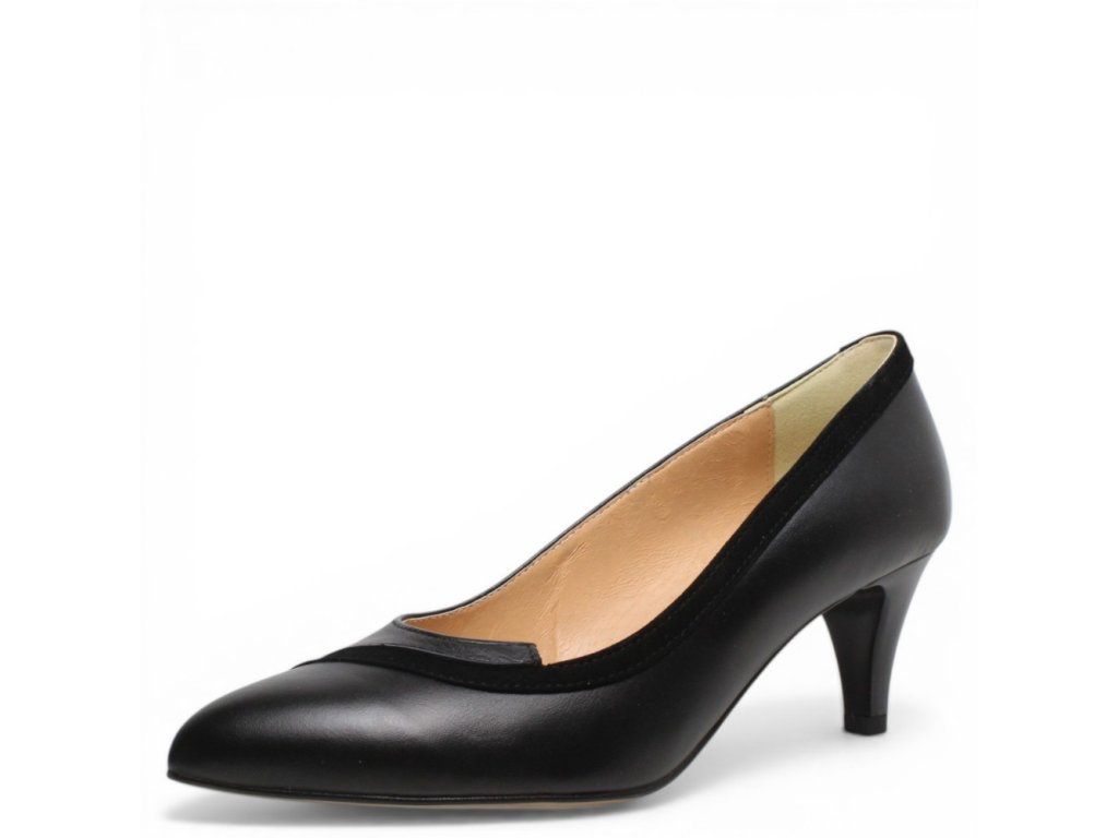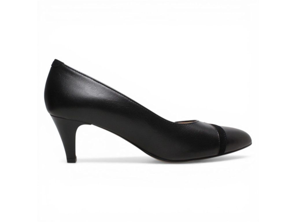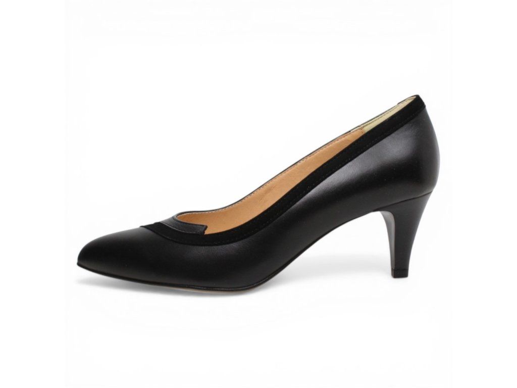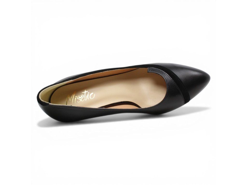 Dámské kožené lodičky Misstic s černým vzorem na pohodlném podpatku.
