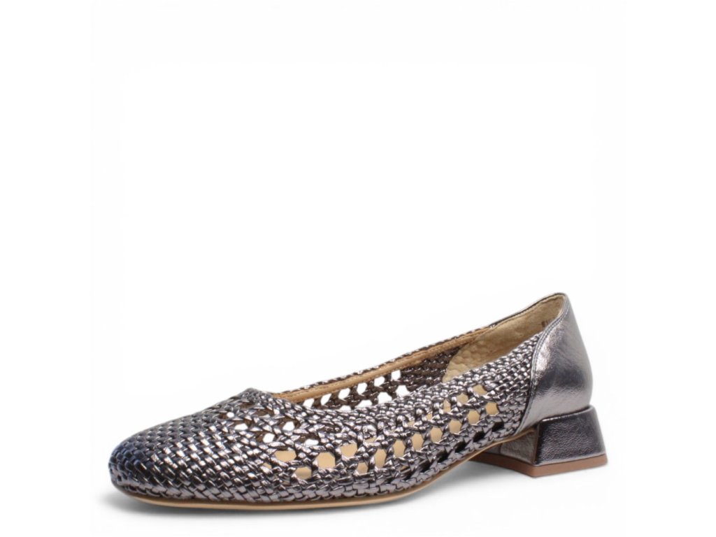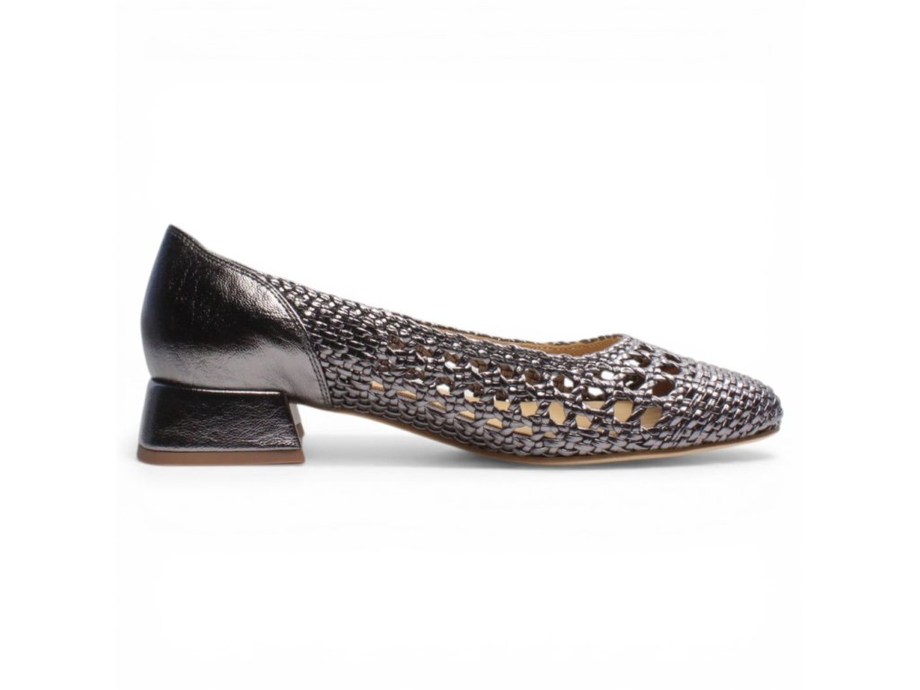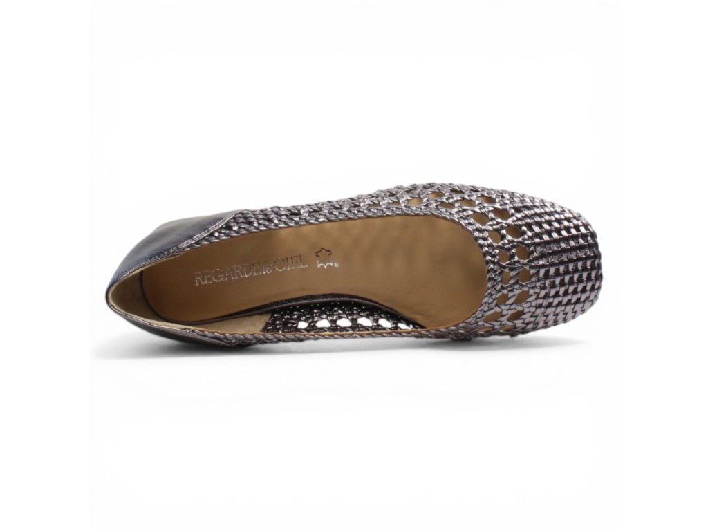 Dámské lodičky Regarde na pohodlném podpatku s bronzovým vzorem. Propletený vzor vypadá elegantně.