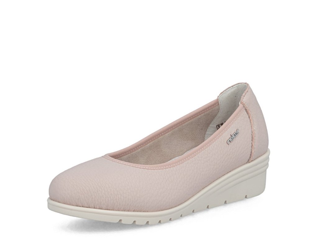 Dámské lodičky Rieker L5360-31 ve světle růžovém odstínu zaujmou jednoduchým elegantním vzhledem a velmi pohodlným klínkem. Měkké kožené provedení a příjemná stélka zajistí komfort i při celodenním nošení.