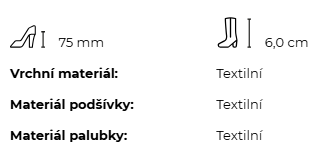 Podošv: Podošev obuvi s protišmykovým vzorom je vyrobená zo syntetického materiálu. Podpätok je vysoký cca 6 cm.
