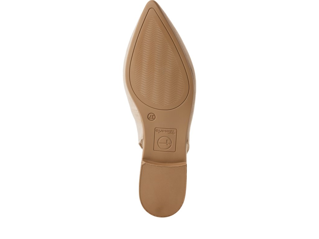 Dámské kožené "slingback" lodičky Tamaris v minimalistickém designu s nízkým podpatkem, úzkou špičkou a volnou patou.