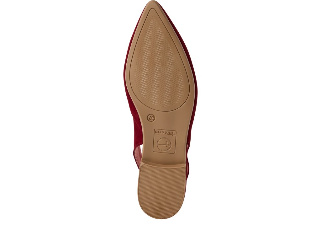 Dámské kožené "slingback" lodičky Tamaris v minimalistickém designu s nízkým podpatkem, úzkou špičkou a volnou patou.