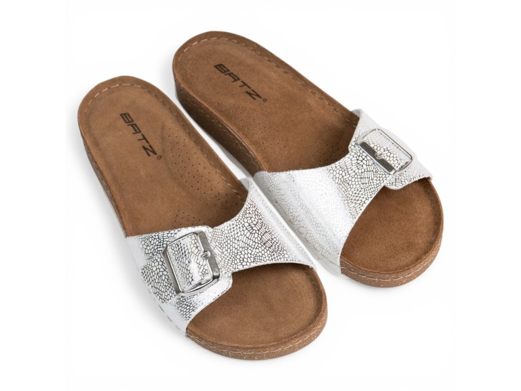 Pantofle BATZ IBIZA stříbrná jsou kožené, mají anatomicky tvarovanou stélku, která dopřeje vašim nohám fantastický komfort. Podrážka je flexibilní. Klínek vysoký cca 3 cm.