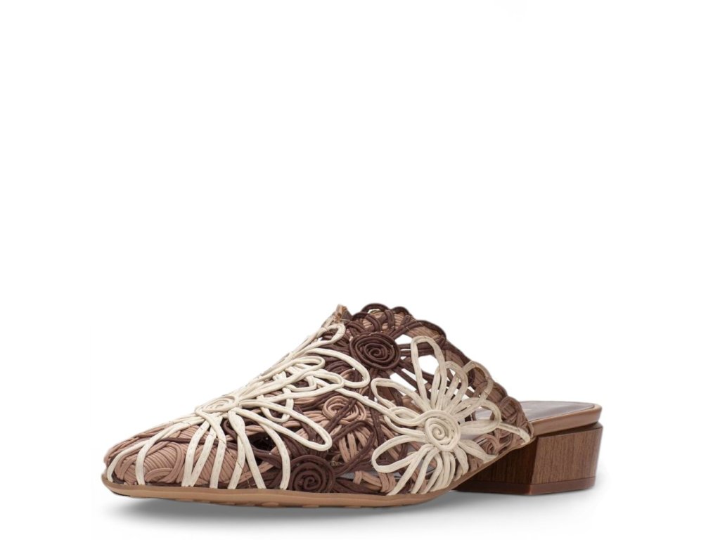 Dámské pantofle Hispanitas s koženým vzorem a propletenými pásky. Kožený materiál se snadno přizpůsobí Vašemu chodidlu. Jsou elegantní na noze.