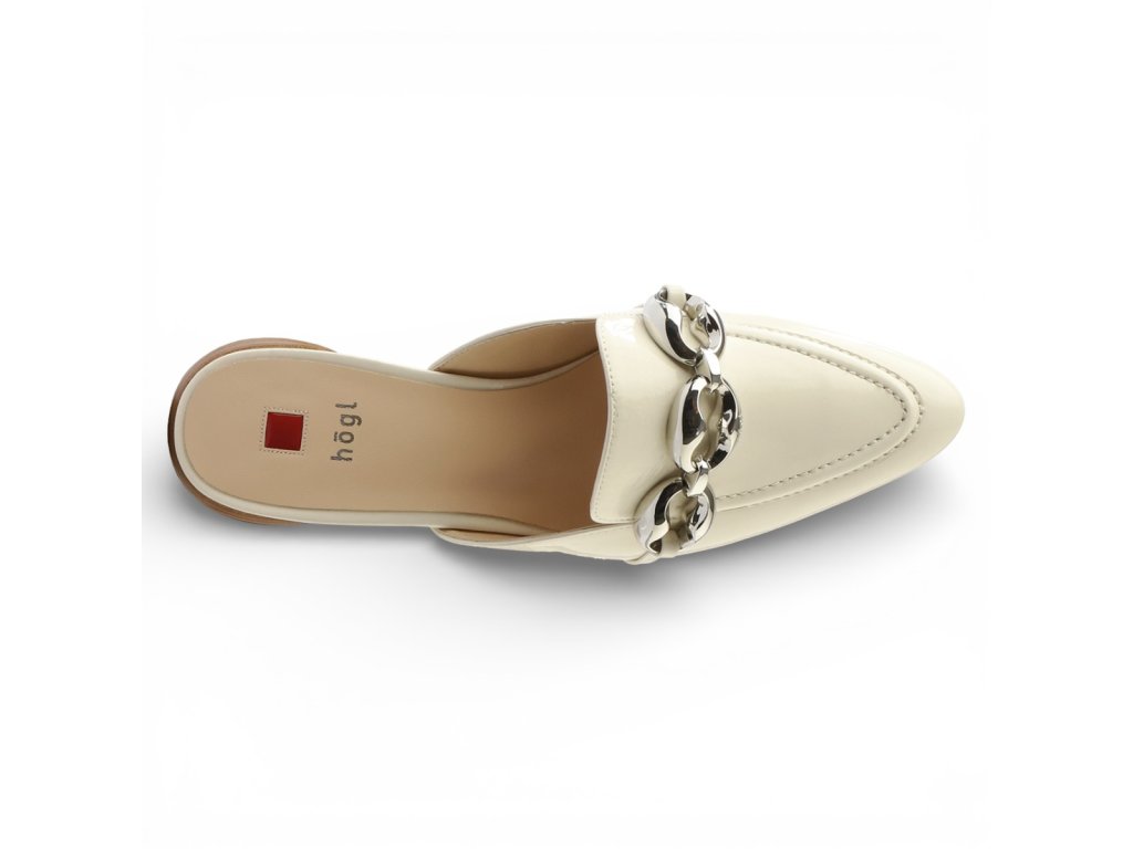 Dámské pantofle HÖGL v luxusním provedení. Béžový vzor s kovovou ozdobou vypadá elegantně. Podpatek je stabilní. Pantofle perfektně sedí na noze.