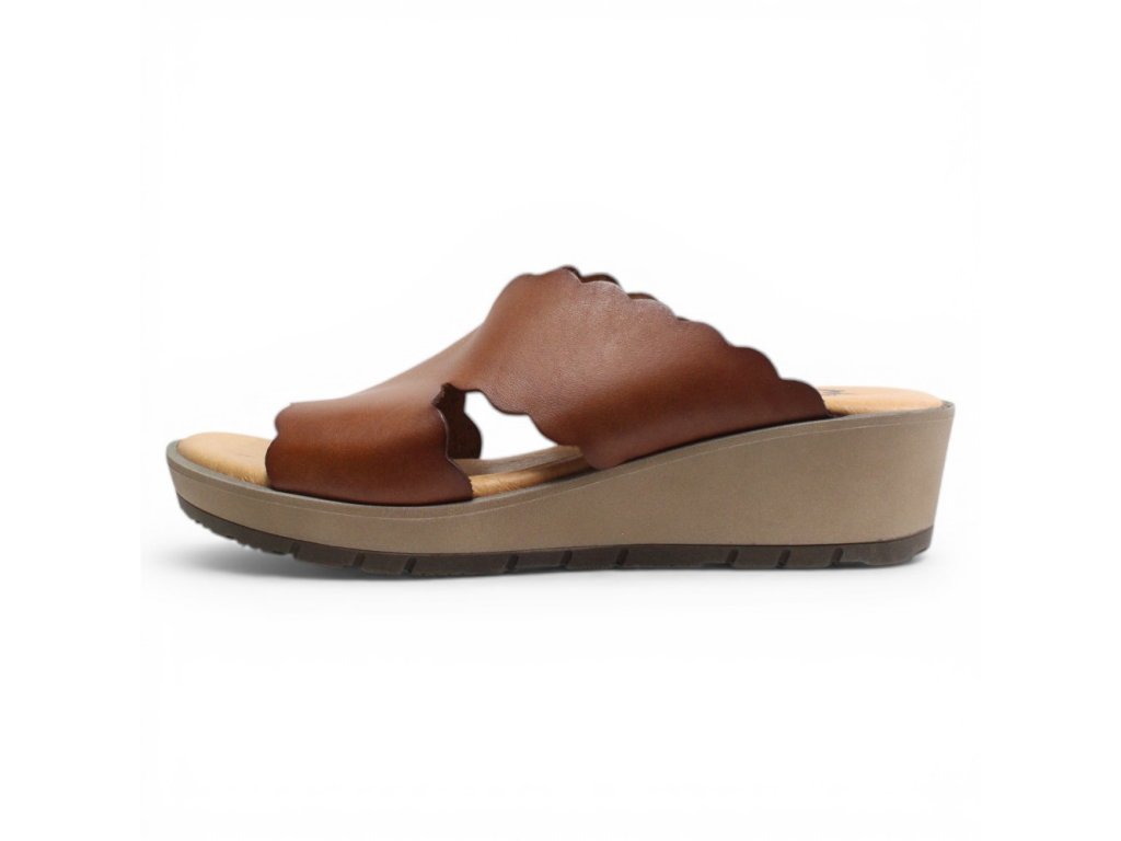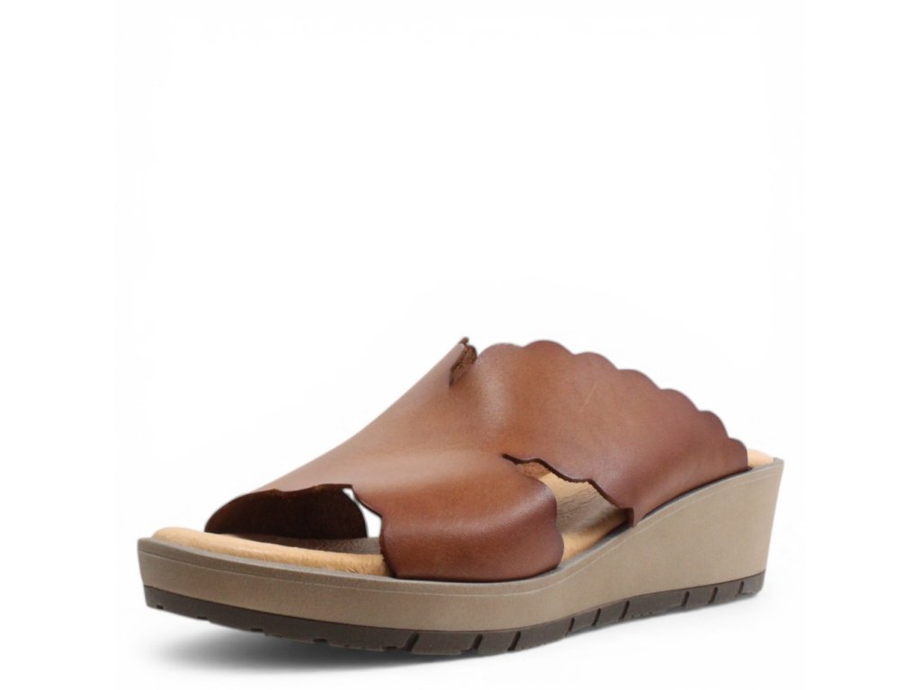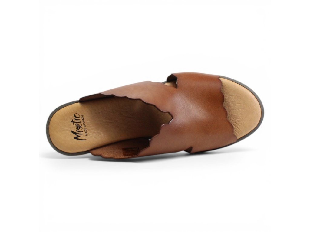 Dámské kožené pantofle Misstic s vyšším klínkem.