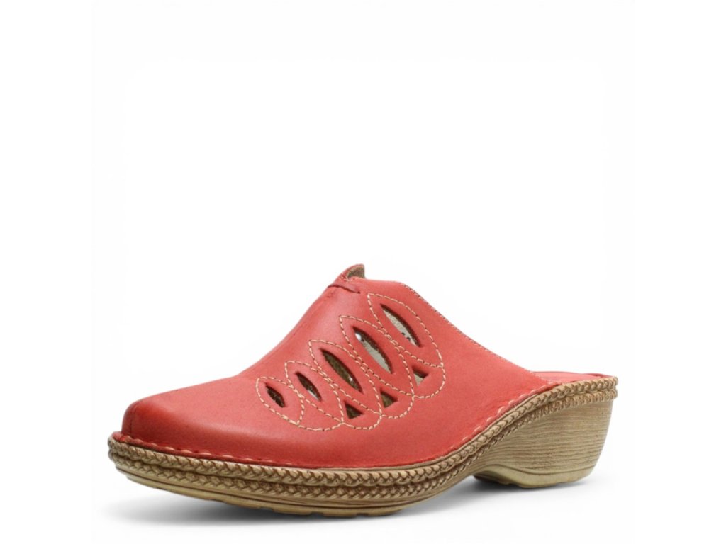Dámské kožené pantofle Nik s uzavřenou špičkou a perforovaným svrškem.