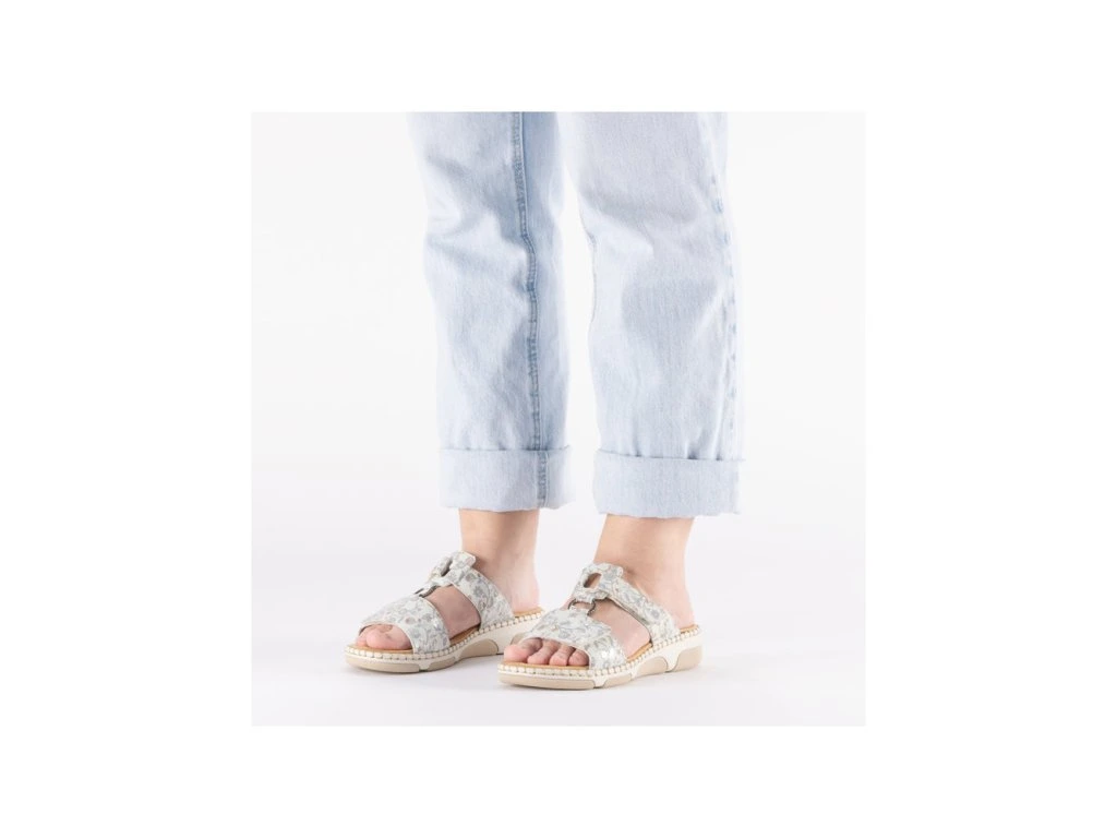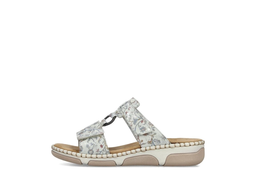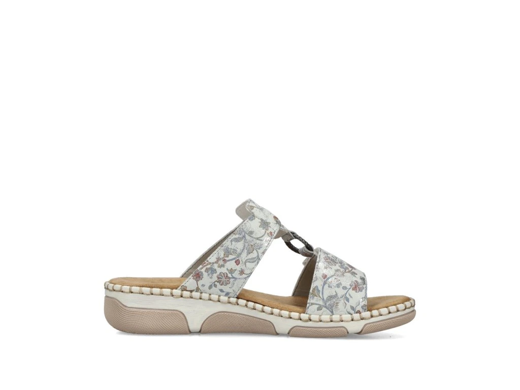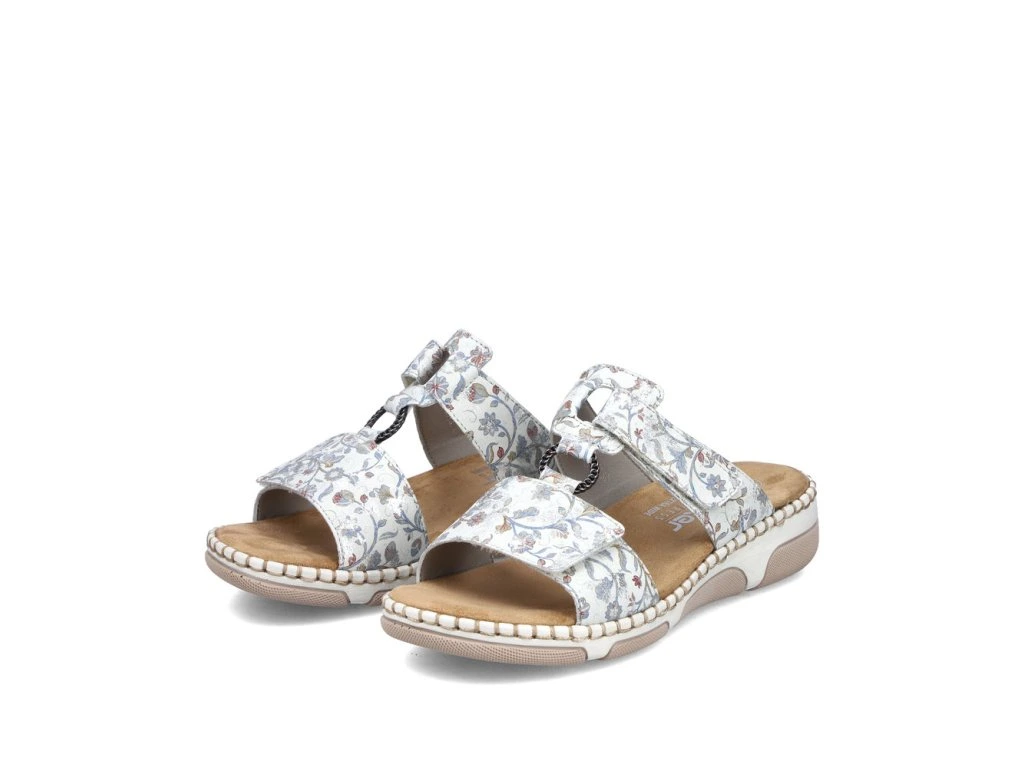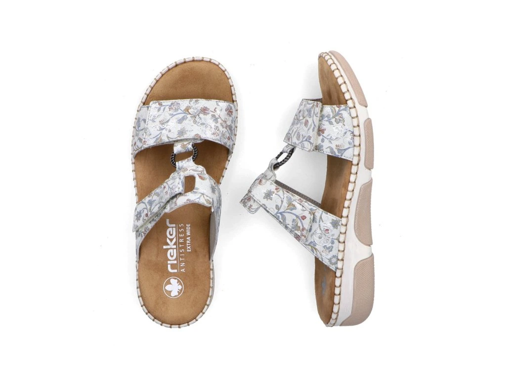Dámské pantolety na klínku Rieker 66292-90 v jemném květovaném provedení spojují letní vzhled s maximálním komfortem. Měkká stélka, suchý zip a extra šířka jsou ideální pro celodenní nošení.