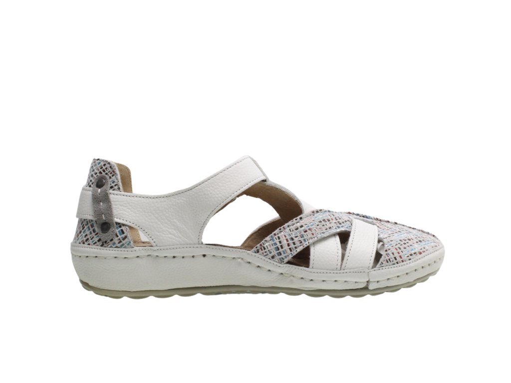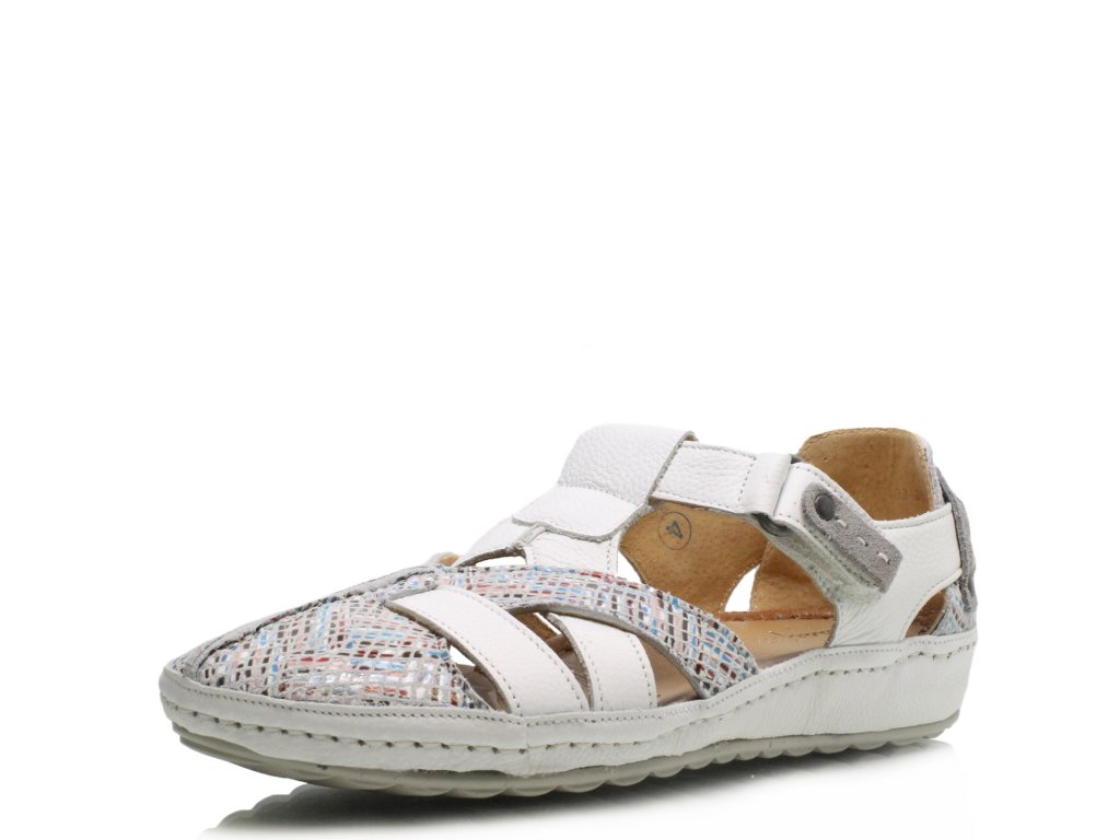Dámské polobotky Maciejka na nízké platformě. Překřížené pásky s ozdobným vzorem zaujmou na první pohled. Pásek je na suchý zip.