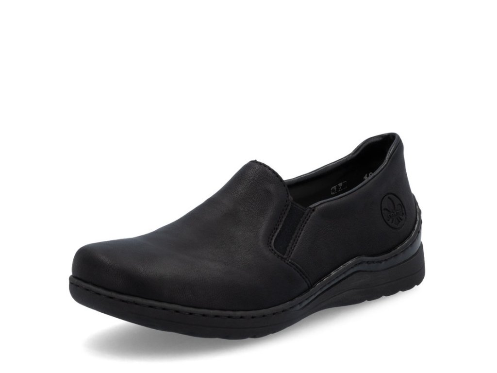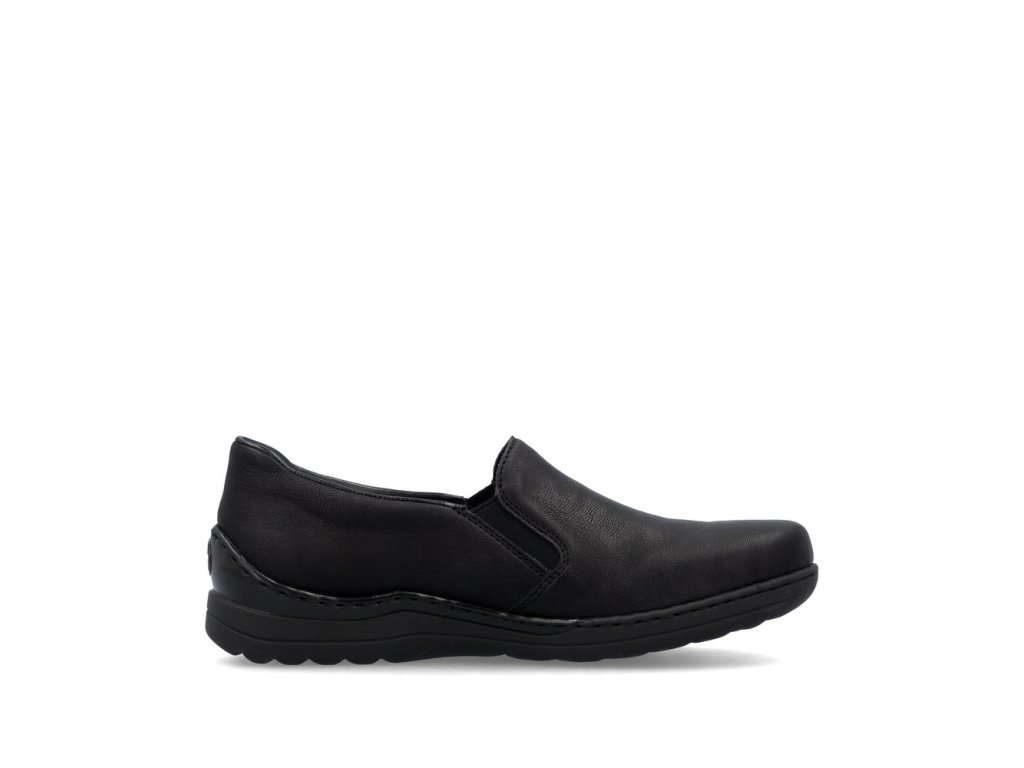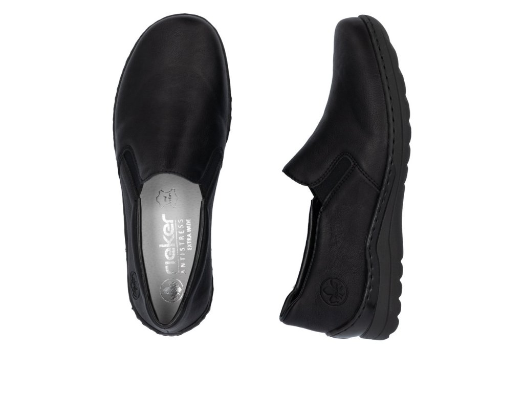 Dámské polobotky Rieker 48964-00 v černé barvě nabízejí maximální pohodlí díky extra měkké stélce a lehké podešvi. Model s extra šířkou H poskytuje dostatek prostoru pro chodidlo a gumička usnadňuje obouvání.