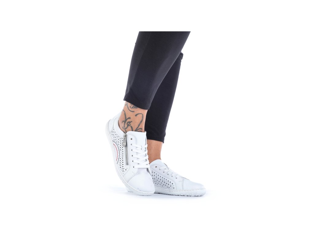 Svršek: Svršek obuvi je vyrobený z koženého materiálu. Barva svršku je bílá.