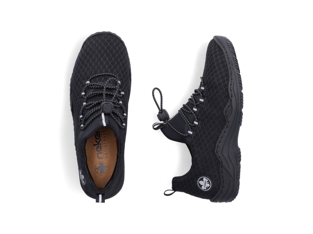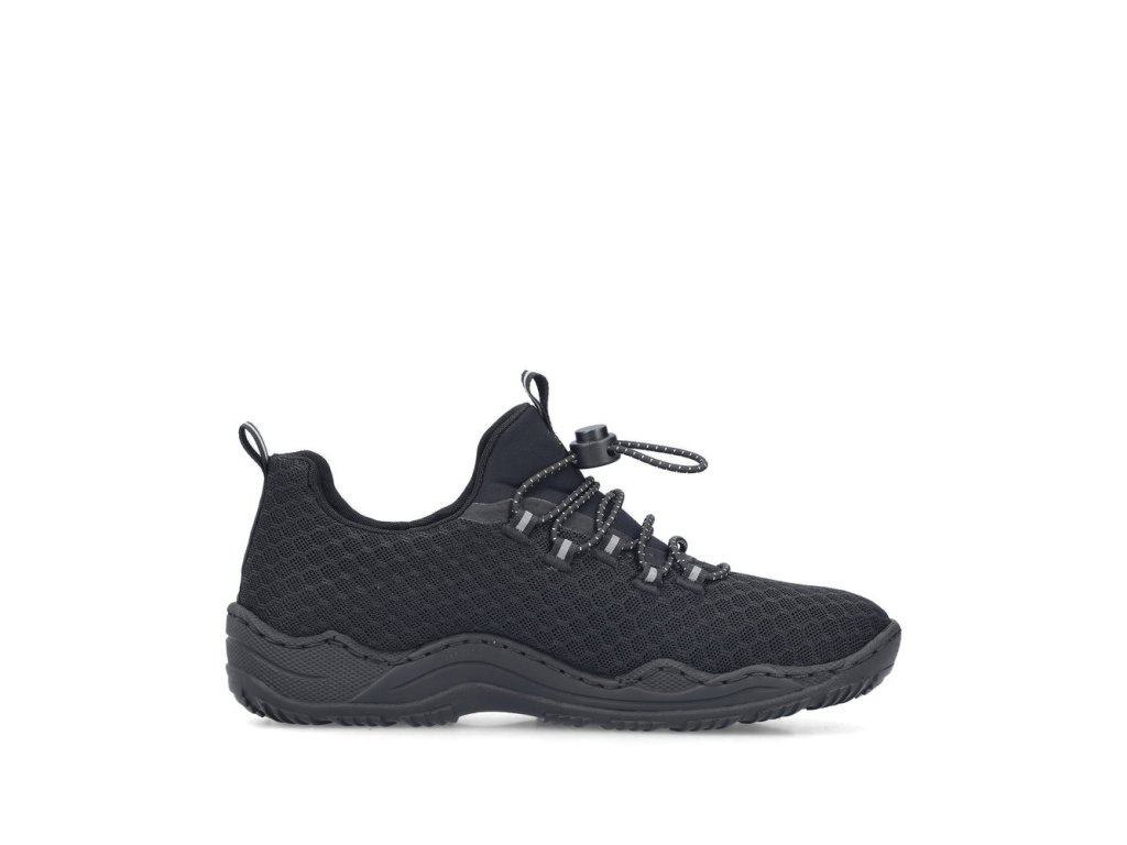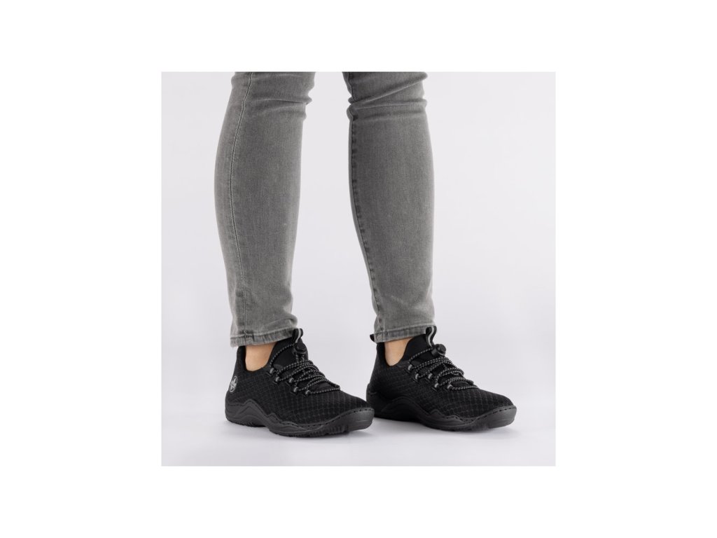 Dámské sportovní polobotky Rieker L0550-01 v černém provedení jsou ideální volbou pro aktivní den i volný čas. Lehký textilní svršek, pružné šněrování a měkký došlap zajistí pohodlí při každém kroku.