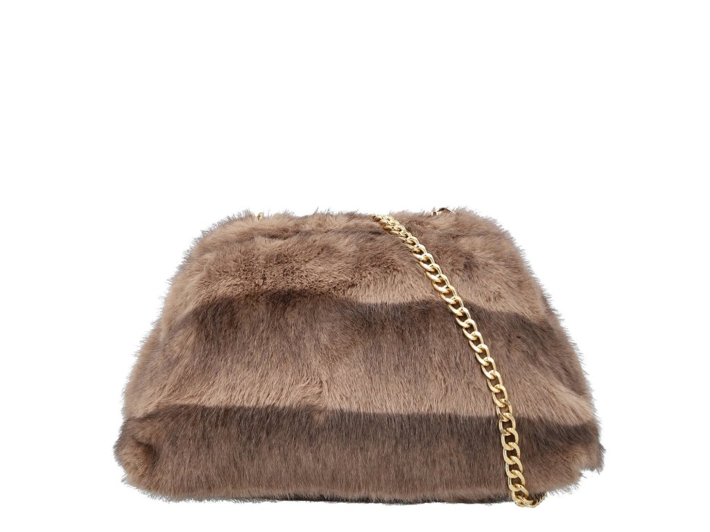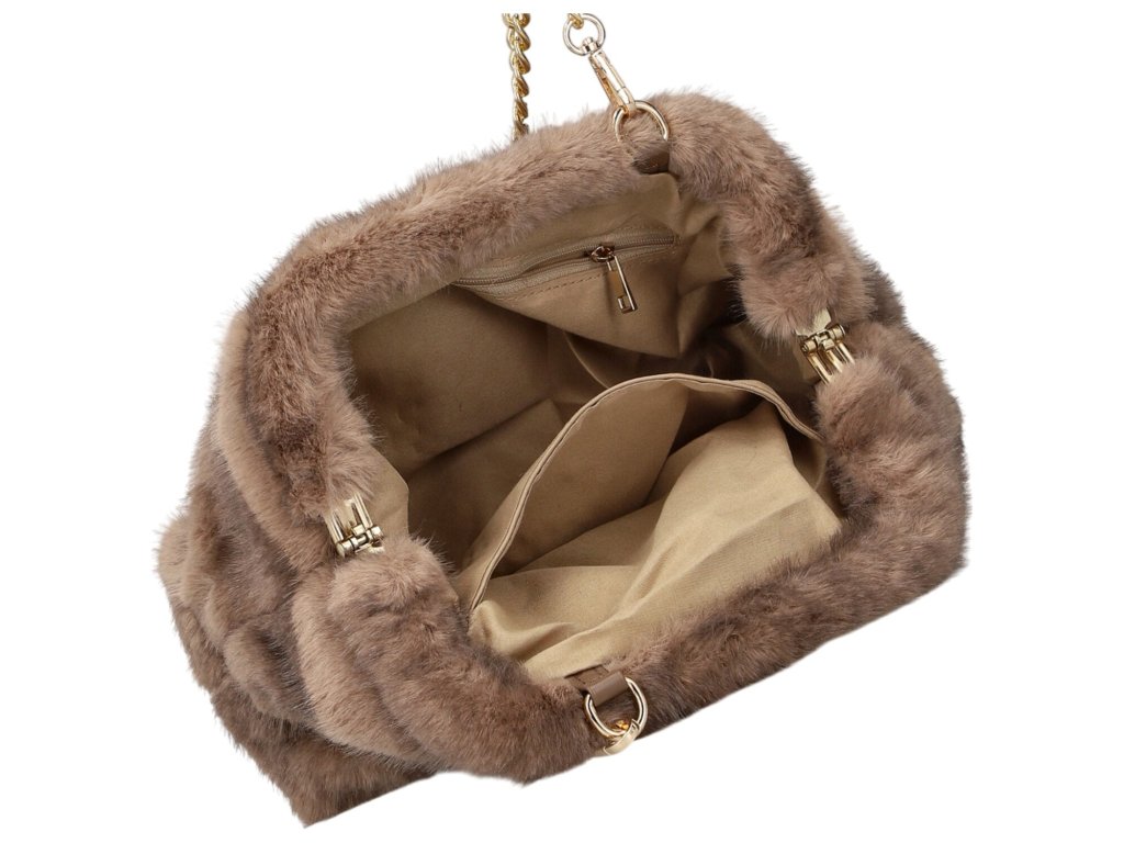 Elegantní dámská kabelka se zapínáním na zip a dlouhým popruhem přes rameno. Kabelka má chlupatý vzor.