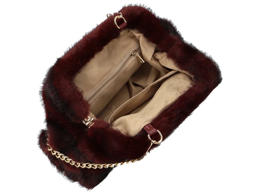 Elegantní dámská kabelka se zapínáním na zip a dlouhým popruhem přes rameno. Kabelka má chlupatý vzor.
