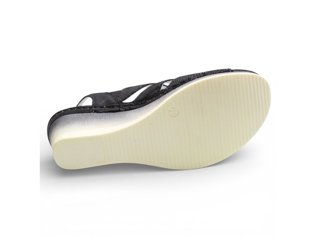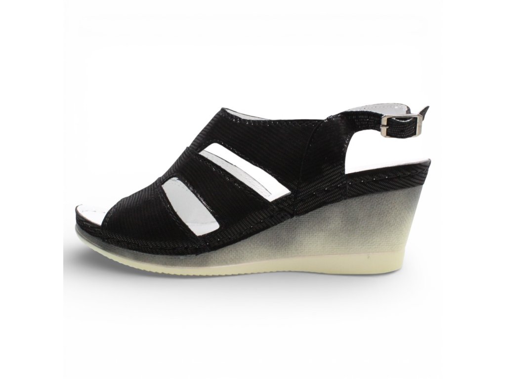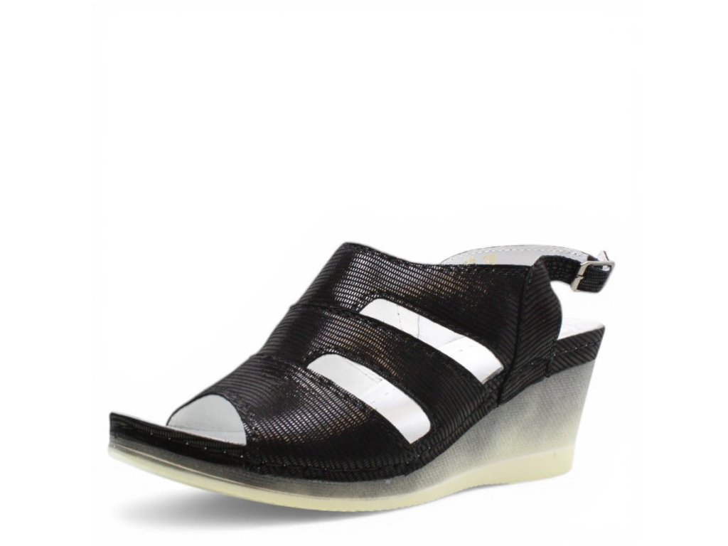 Dámské sandály Aspena na vyšším klínku s černým vzorem.