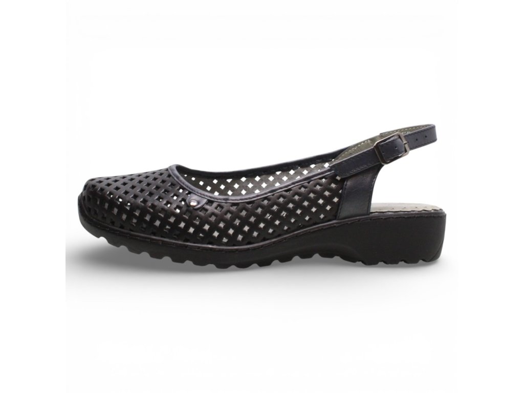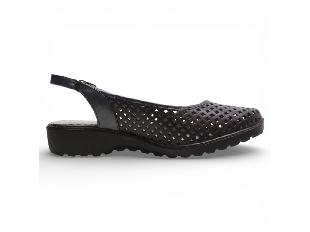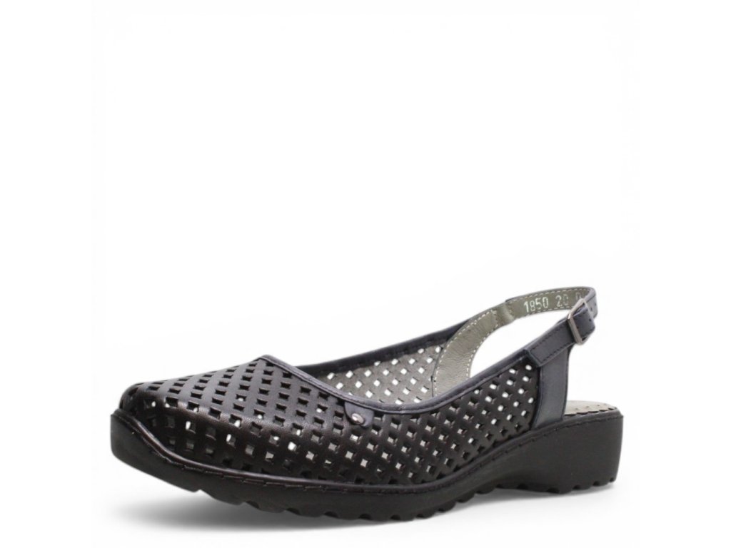 Dámské kožené sandály Axel s plnou perforovanou špičkou a volnou patou se zapínáním na přezku.