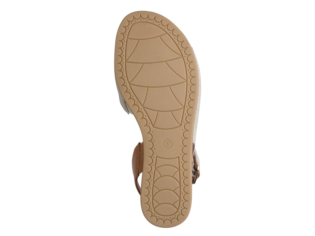Dámské sandály Jana na pohodlném klínku s měkkou stélkou pro komfortní chůzi. Vytlačovaný vzor s hnědými doplňky zaujme na první pohled.