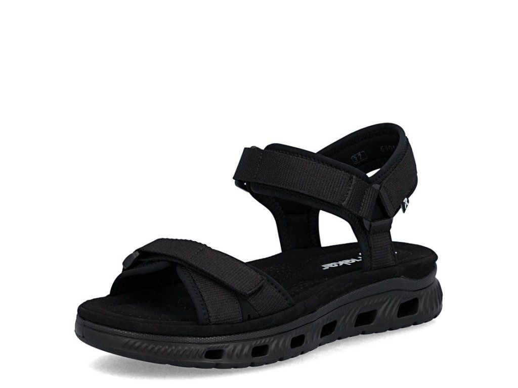 Dámské trekingové sandály Rieker 64052-00 v černé barvě jsou ideální pro aktivní léto i delší chůzi. Lehká tlumicí podrážka, měkká stélka a suché zipy zaručí maximální pohodlí a stabilitu.