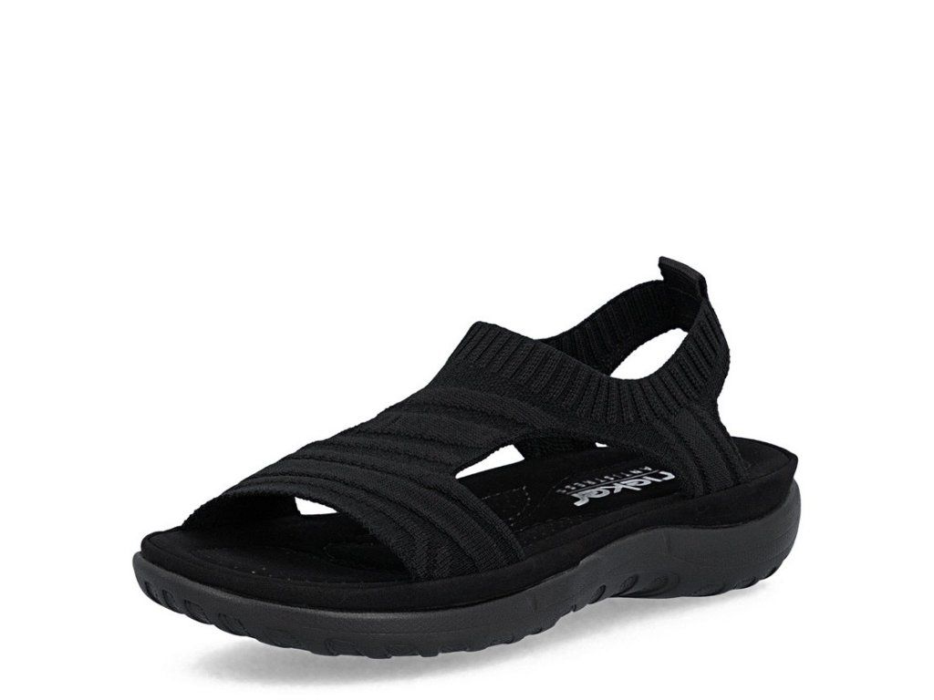 Dámské sportovní sandály Rieker 64850-00 v černém provedení nabídnou maximální pohodlí při aktivním dni. Pružný pletený svršek, lehká tlumicí podrážka a snadné nazouvání zajišťují komfort na každém kroku.