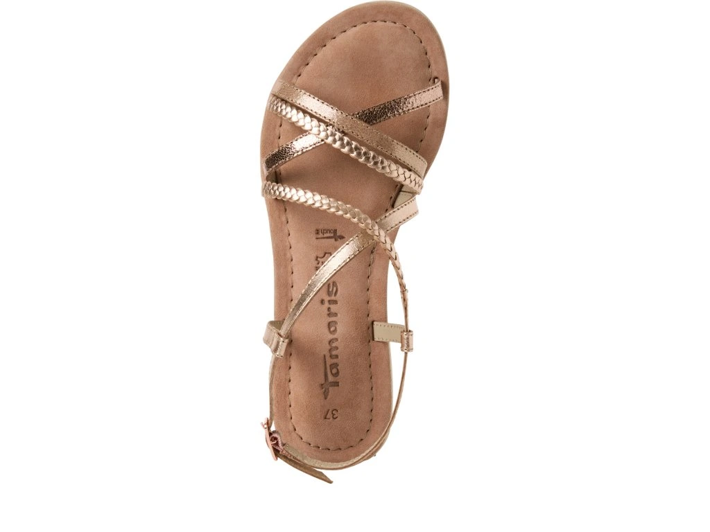 Dámské sandály Tamaris s překříženými pásky přes nárt a tenkým páskem kolem kotníku pro bezpečné uchycení.