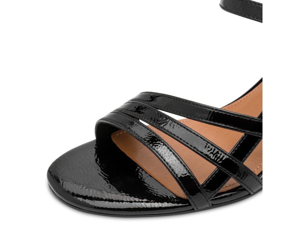Dámské sandály Tamaris s tenkými překříženými pásky a nastavitelným páskem kolem kotníku se zlatou přezkou.