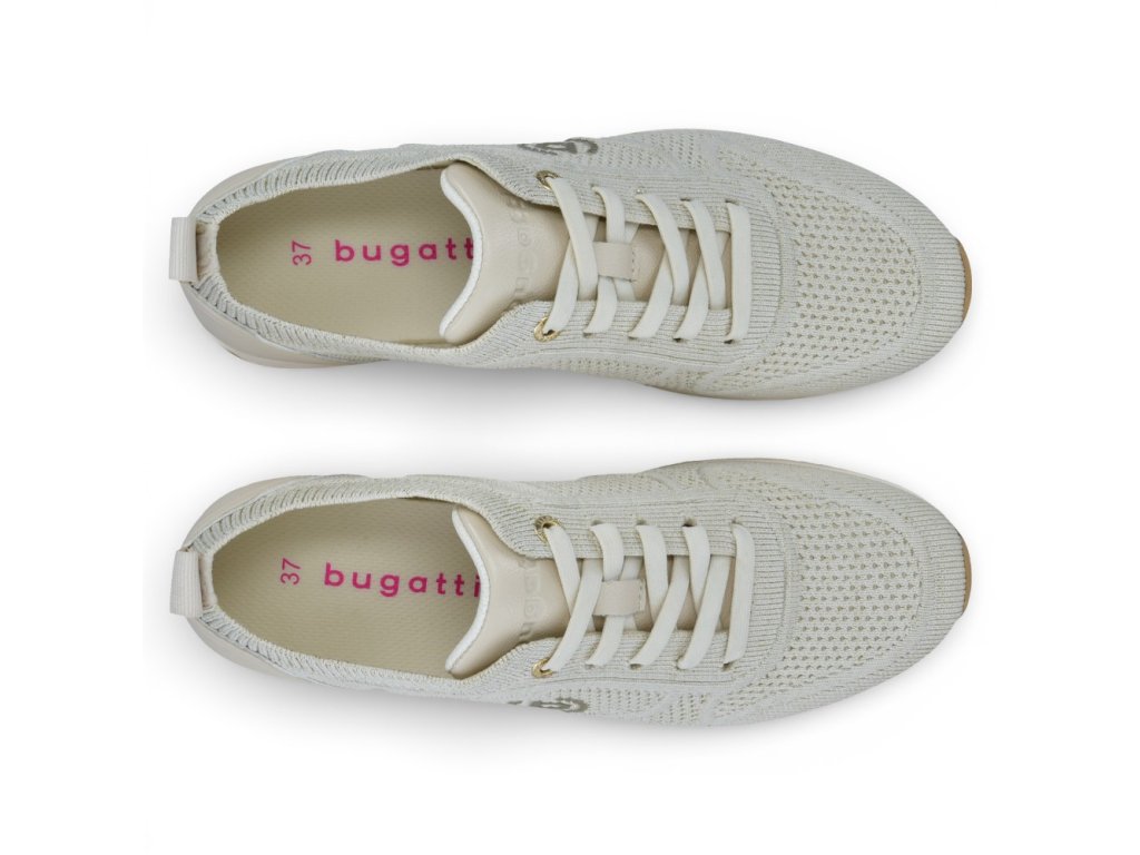 Dámské tenisky Bugatti Minka zaujmou lehkým textilním svrškem s jemným vzorem a elegantními zlatými detaily. Pohodlné, flexibilní a ideální na každodenní nošení ve městě i na cestování.